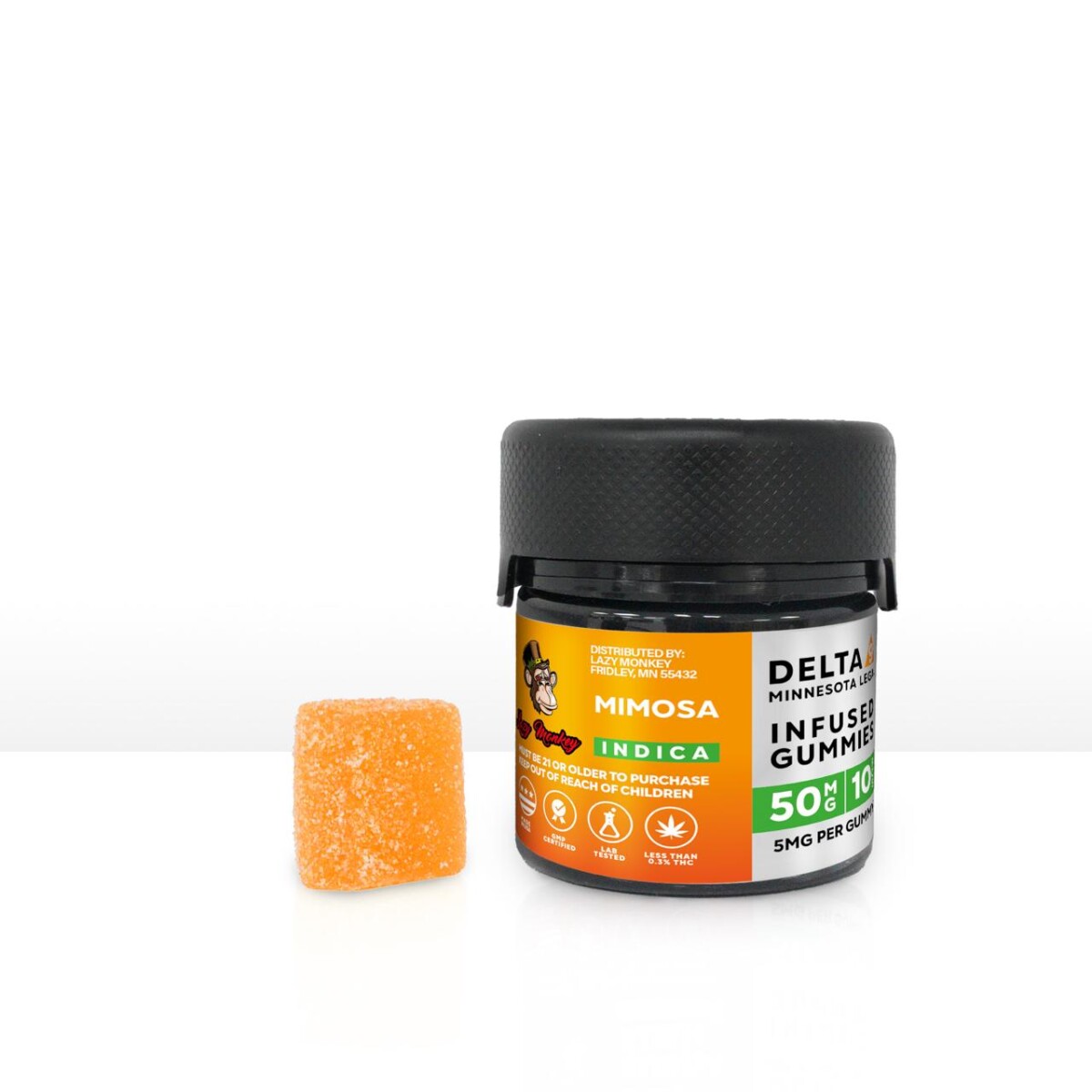 Enjoy a tasty treat with Lazy Monkey D9 50mg Infused Gummies. Each 10-pack pack provides 50mg of flavorful Mimosa to make your edible experience enjoyable and effective. Strains are hand-selected for optimal effects, giving you the relaxation you’re looking for. Enjoy in the comfort of your own home!