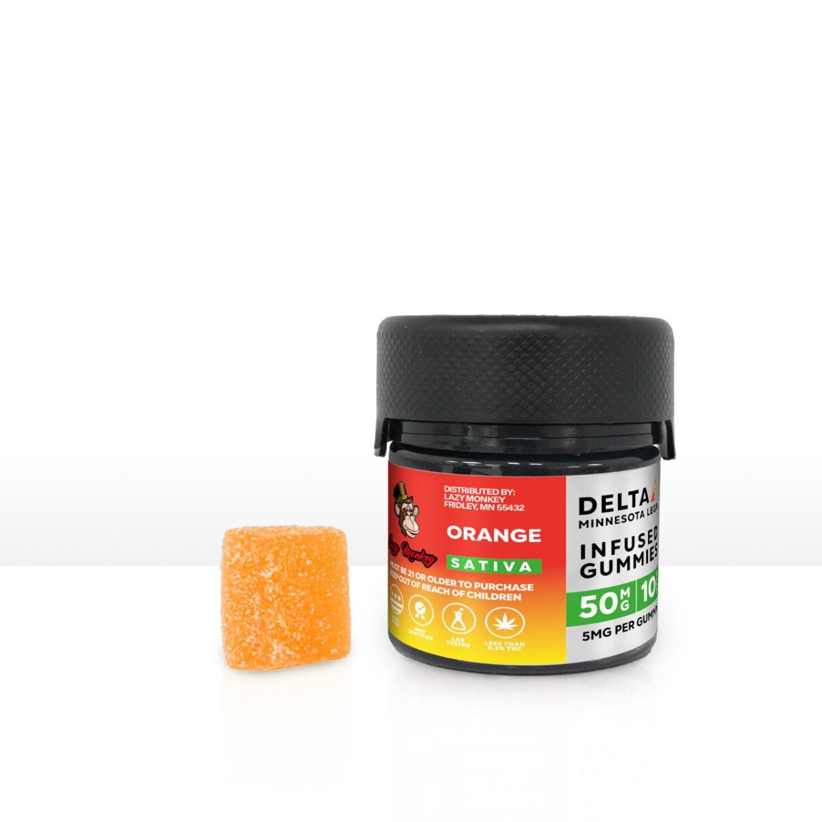 Enjoy a tasty treat with Lazy Monkey D9 50mg Infused Gummies. Each 10-pack pack provides 50mg of flavorful Orange to make your edible experience enjoyable and effective. Strains are hand-selected for optimal effects, giving you the relaxation you’re looking for. Enjoy in the comfort of your own home!