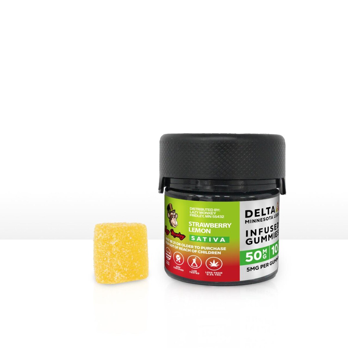 Enjoy a tasty treat with Lazy Monkey D9 50mg Infused Gummies. Each 10-pack pack provides 50mg of flavorful Strawberry Lemon to make your edible experience enjoyable and effective. Strains are hand-selected for optimal effects, giving you the relaxation you’re looking for. Enjoy in the comfort of your own home!