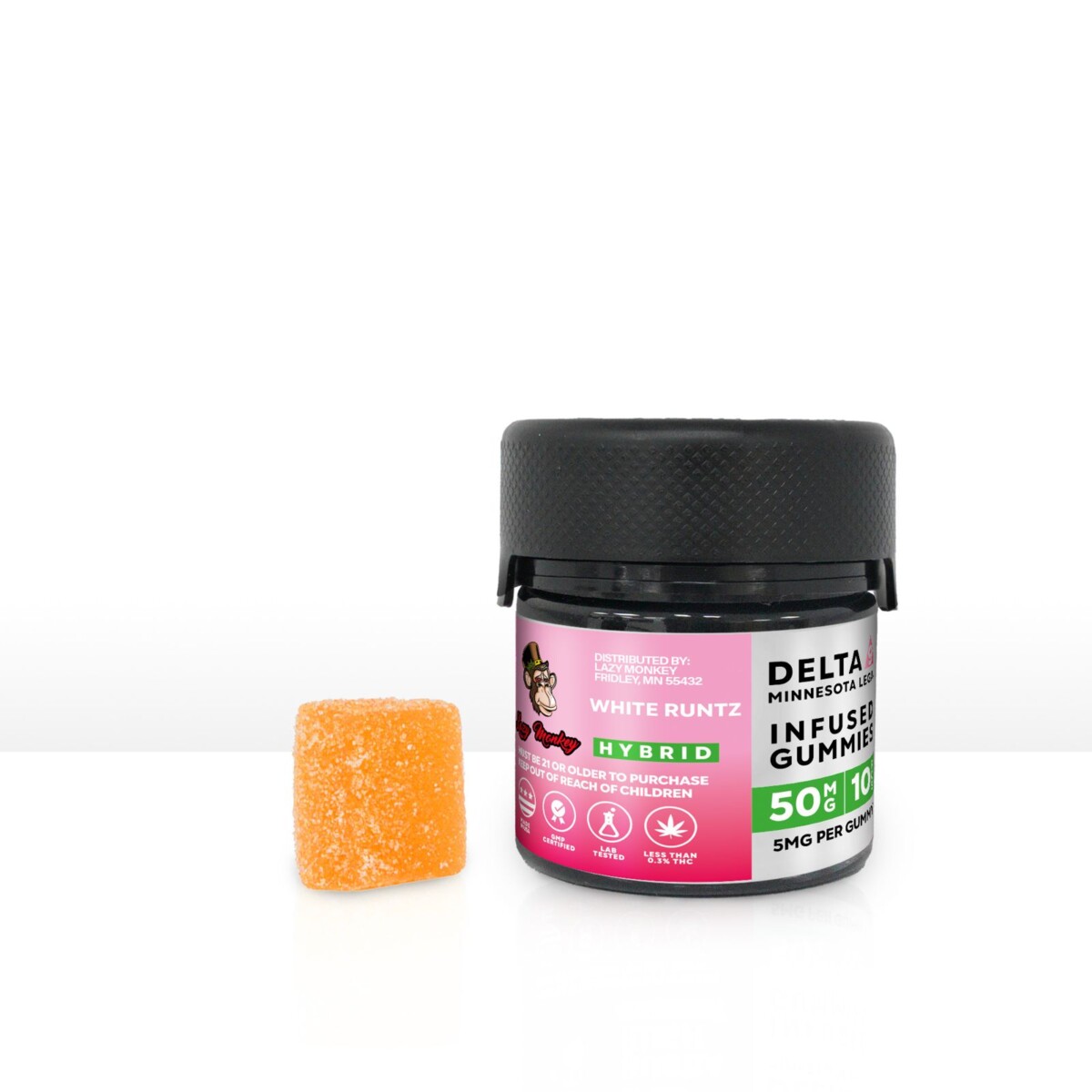 Enjoy a tasty treat with Lazy Monkey D9 50mg Infused Gummies. Each 10-pack pack provides 50mg of flavorful White Runtz to make your edible experience enjoyable and effective. Strains are hand-selected for optimal effects, giving you the relaxation you’re looking for. Enjoy in the comfort of your own home!